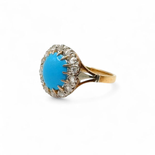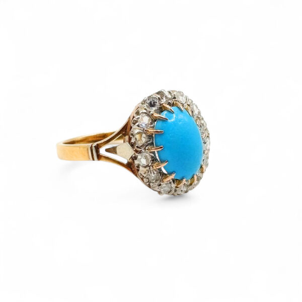Pierścionek antyczny z turkusem i diamentami – Francja, lata 40./50. XX wieku