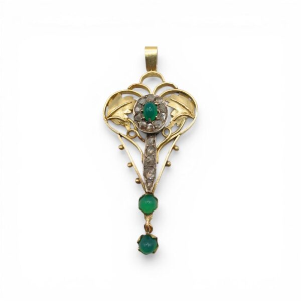 Antyk jubilerski w formie zawieszki z diamentami i szmaragdami.