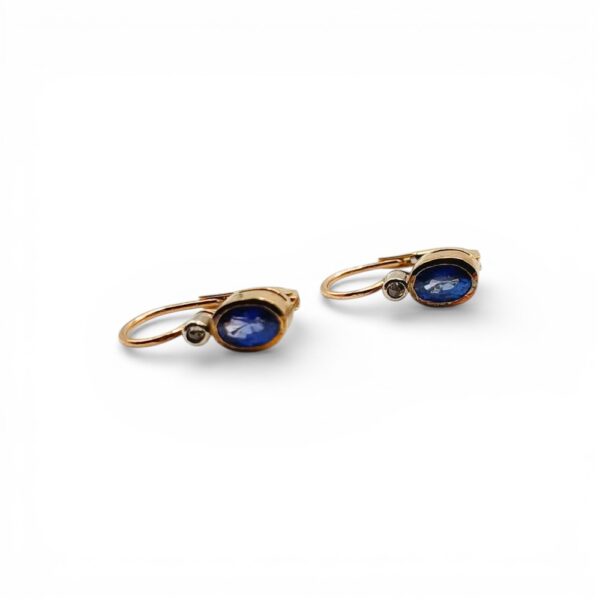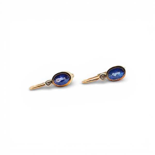 W biżuterii pierwszej połowy XX w. jubilerzy chętnie zestawiali szafiry z diamentami. Ten kontrast kolorów i światła nadaje kolczykom elegancję, która pozostaje ponadczasowa.