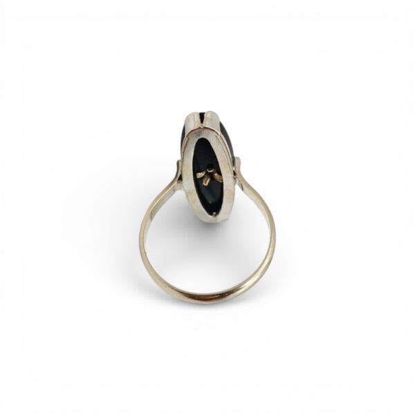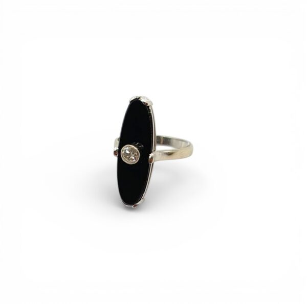 Rodzaj biżuterii: antyczny pierścionek z onyksem i diamentem