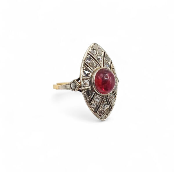 Rodzaj biżuterii: antyczny pierścionek z rubinem i diamentami
