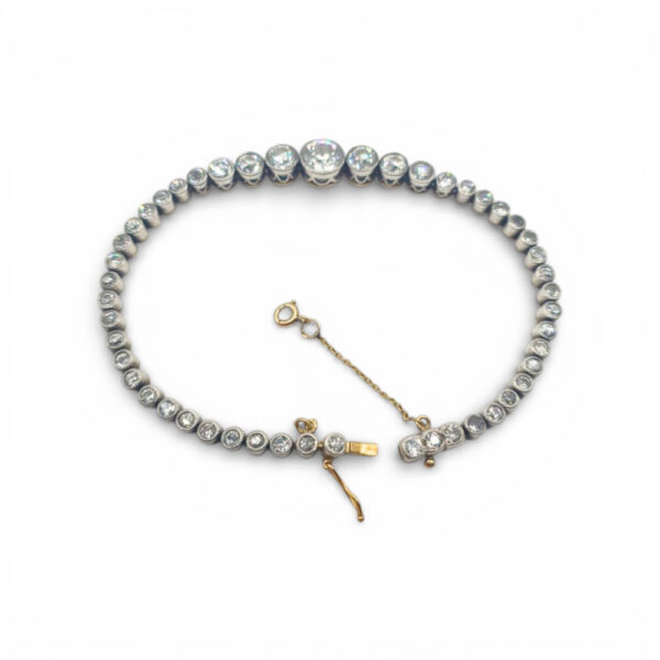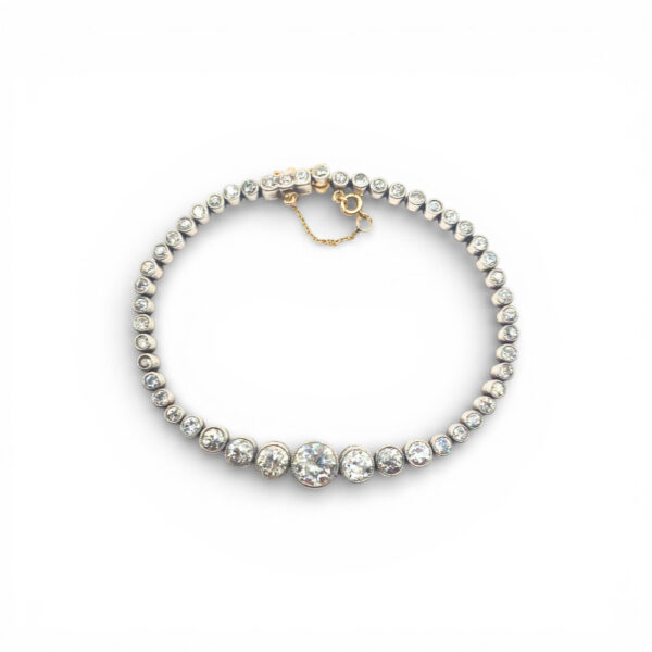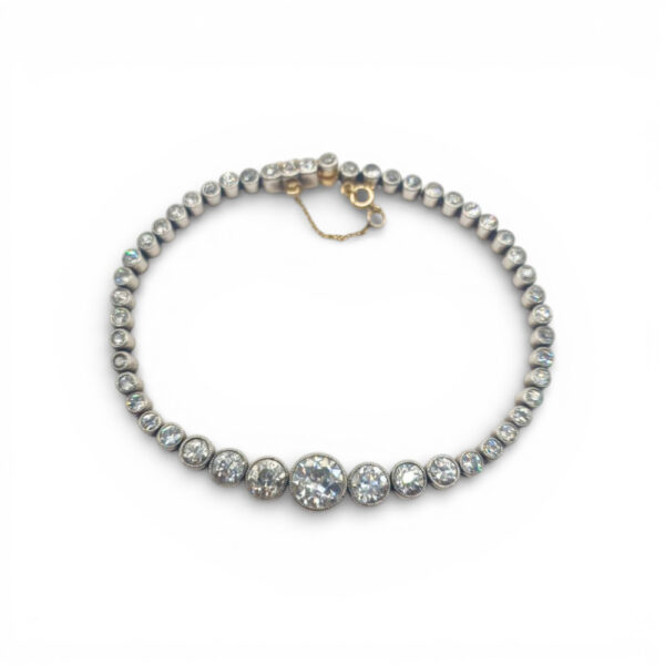 Diamenty ułożone rzędowo na całej długości bransoletki.