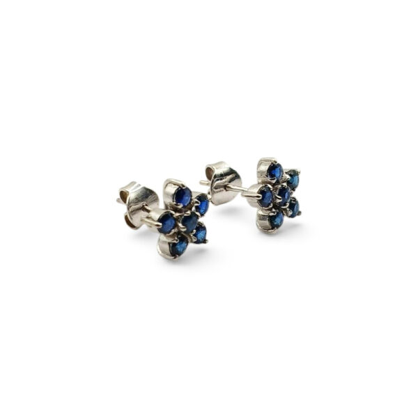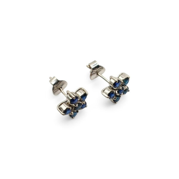 Kolczyki zdobi 12 szafirów o średnicy 2,5 mm, osadzonych w równomiernym układzie.