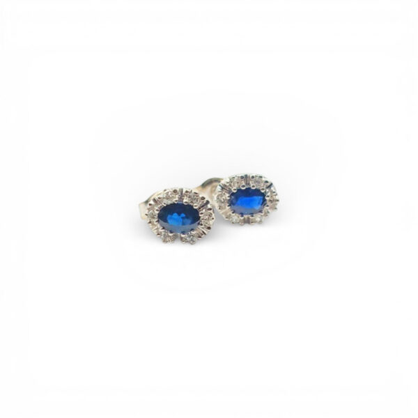 Wyrób jubilerski w formie kolczyków z szafirami i diamentami.