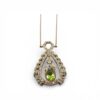 Wyrób jubilerski w postaci złotego naszyjnika z oliwinem i diamentami.
