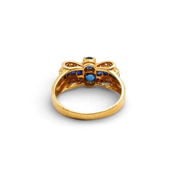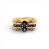 Wyrób jubilerski w formie pierścionka z szafirami i diamentami.