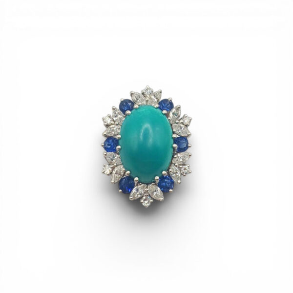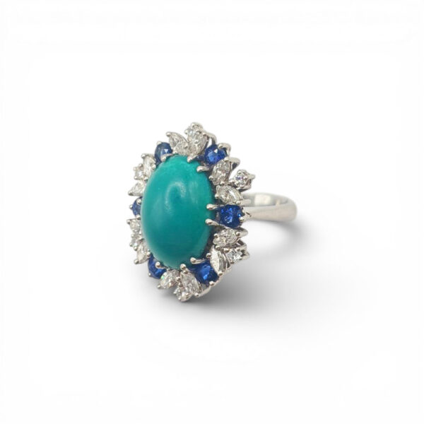 Pierścionek platynowy z turkusem szafirami i diamentami 6900.00