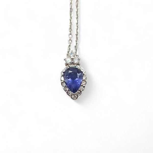 Rodzaj biżuterii: wisior z szafirem i diamentami na łańcuszku
