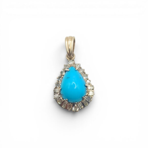 Złota zawieszka z turkusem i diamentami 3800.00